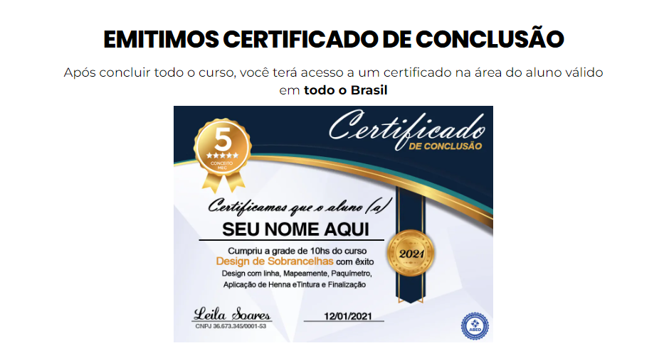 Após você finalizar todas suas aulas, você receberá um lindo Certificado de Conclusão. Certificado Digital (PDF).